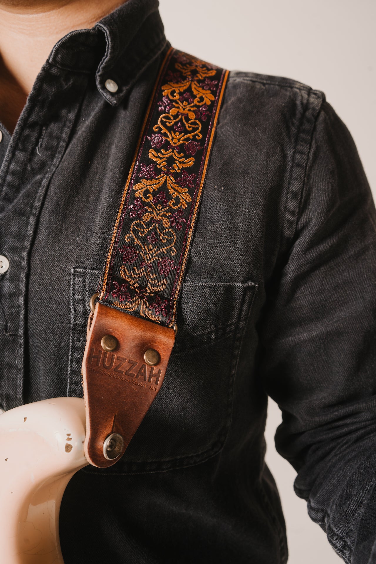 Esta correa de guitarra está hecha para resistir el paso del tiempo en belleza y artesanía.